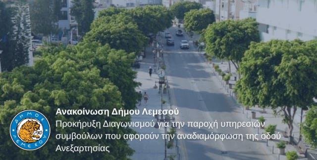 Προκήρυξη Διαγωνισμού για την παροχή υπηρεσιών συμβούλων που αφορούν την αναδιαμόρφωση της οδού Ανεξαρτησίας