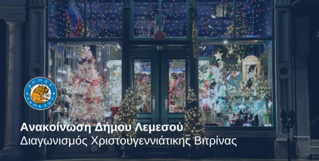 Ο Δήμος Λεμεσού προκηρύσσει διαγωνισμό για την καλύτερη διακόσμηση Χριστουγεννιάτικης βιτρίνας σε καταστήματα που βρίσκονται εντός των δημοτικών ορίων Λεμεσού. Οι ενδιαφερόμενοι καταστηματάρχες παρακαλούνται όπως δηλώσουν τη συμμετοχή τους στον διαγωνισμό μέχρι την Παρασκευή 8 Δεκεμβρίου 2023,  στι...