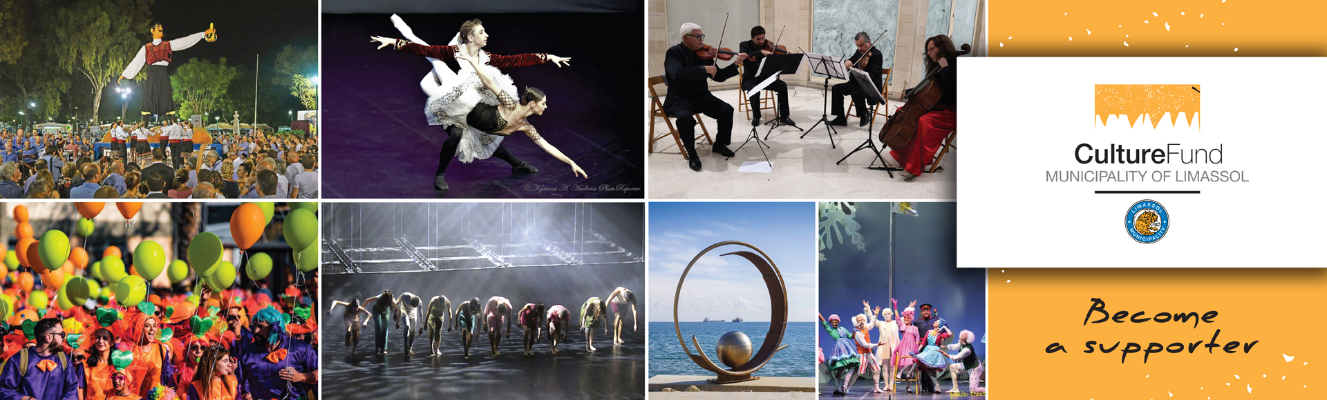 With a symbolic, annual subscription starting from €60 (namely €5/month), you can contribute to the events of our city and further enhance the cultural life of Limassol. This initiative will give you the right to use the Fund’s logo on all your promotional material for a period of twelve months. We do hope that the Cultural Fund will become synonymous with the collective participation to the common cultural asset.