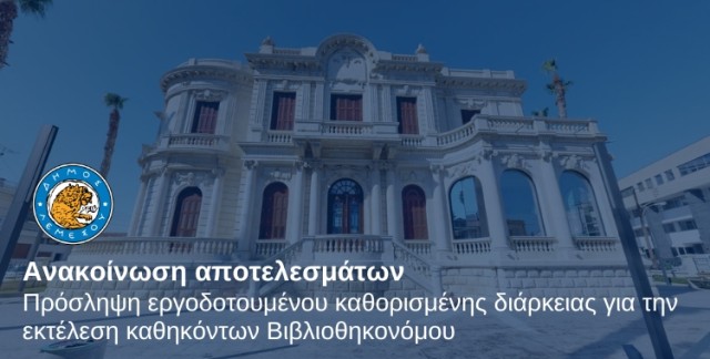 Ανακοίνωση αποτελεσμάτων - Πρόσληψη εργοδοτουμένου καθορισμένης διάρκειας για την εκτέλεση καθηκόντων Βιβλιοθηκονόμου