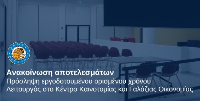 Ανακοίνωση αποτελεσμάτων - Πρόσληψη εργοδοτουμένου ορισμένου χρόνου (Λειτουργός στο Κέντρο Καινοτομίας και Γαλάζιας Οικονομίας)