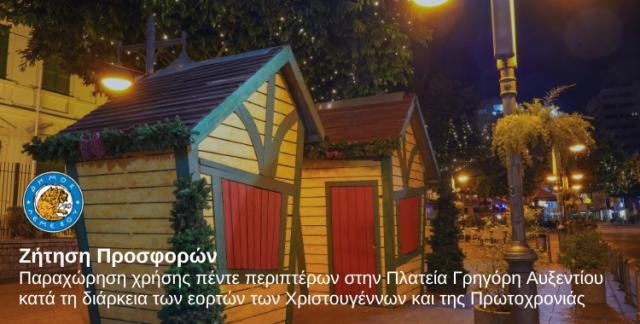 Ζήτηση προσφορών για την παραχώρηση χρήσης περιπτέρων στην Πλατεία Γρηγόρη Αυξεντίου για τις γιορτές των Χριστουγέννων και της Πρωτοχρονιάς